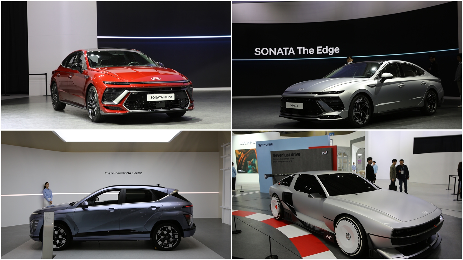 현대자동차는 8세대 쏘나타의 풀체인지급 부분변경 모델인 ‘쏘나타 디 엣지 존’부터 로보틱스와의 미래 일상을 그린 ‘모빌리티 하우스’, 디 올 뉴 코나 일렉트릭 실차와 블루링크 스트리밍 서비스를 선보인 ‘코나 존’, 상품성 개선 모델을 전시한 ‘파비스 존’과 ’아반떼 존’, 아트카로 꾸민 캐스퍼를 만나볼 수 있는 ‘캐스퍼 존’, 고성능 전기차의 미래를 선보인 ‘N 존’, 영실업 또봇과의 콜라보 콘텐츠를 체험해보는 ‘키즈 존’ 등 8가지 테마 공간을 운영했습니다.