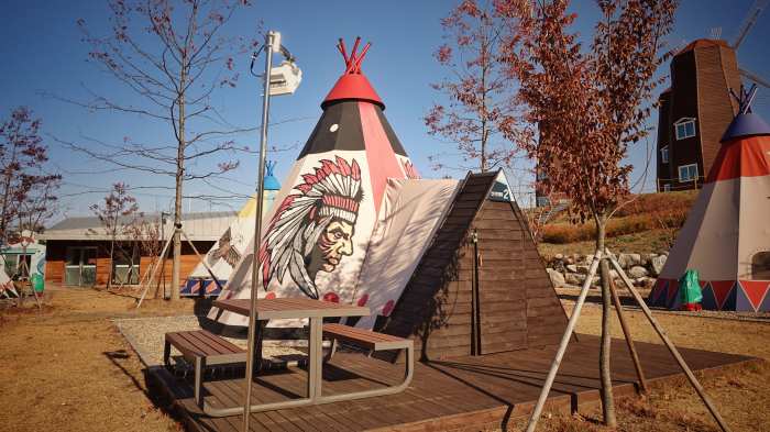 세계캠핑체험장은 임진강과 한탄강 고대산 등 수려한 자연환경을 품고 있는 연천에 위치해 있습니다. 이 캠핑장은 임진, 한탄 펜션동, 야영장, 몽골텐트, 공룡모양 카라반, 풍차펜션, 인디언 텐트 등으로 구성되어 있는데요. 특히 전 세계 다양한 캠핑 문화를 직접 체험해볼 수 있어 이색 캠핑장으로 손꼽히고 있습니다.