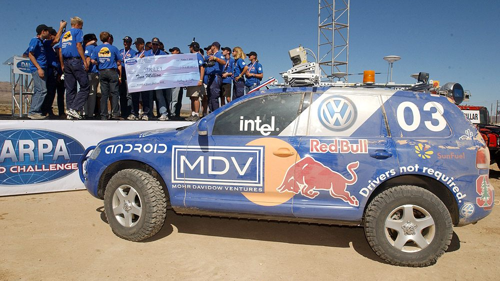 자율주행차의 역사를 이야기할 때 빼놓을 수 없는 것이 미국의 DARPA 대회입니다. 미국은 육군 장비의 1/3을 무인 장비로 대체하기 위한 기술을 개발하기 위해 2004년부터 자율주행 자동차대회 ‘DARPA Grand Chanllenge’를 개최하고 있는데요. 모하비 사막을 장거리 주행하는 대회로, 첫 번째 대회에선 완주를 마친 참가팀이 없었지만 이듬해 스탠퍼드대학팀이 우승을 차지했습니다.