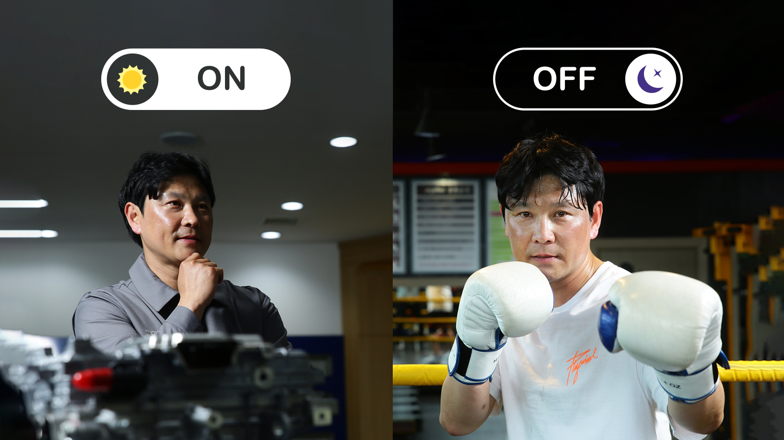 첫 번째로 소개해 드릴 분은 일터에서는 구성원의 개성을 시너지로 발전시키고 품질관리에 대한 자부심을 불어넣는 품질관리실의 리더로, 퇴근 후에는 주먹에 열정 에너지를 실어 스트레스를 날리는 복싱 마니아로 변신하는 파워트레인 품질관리실 최재균 실장입니다.