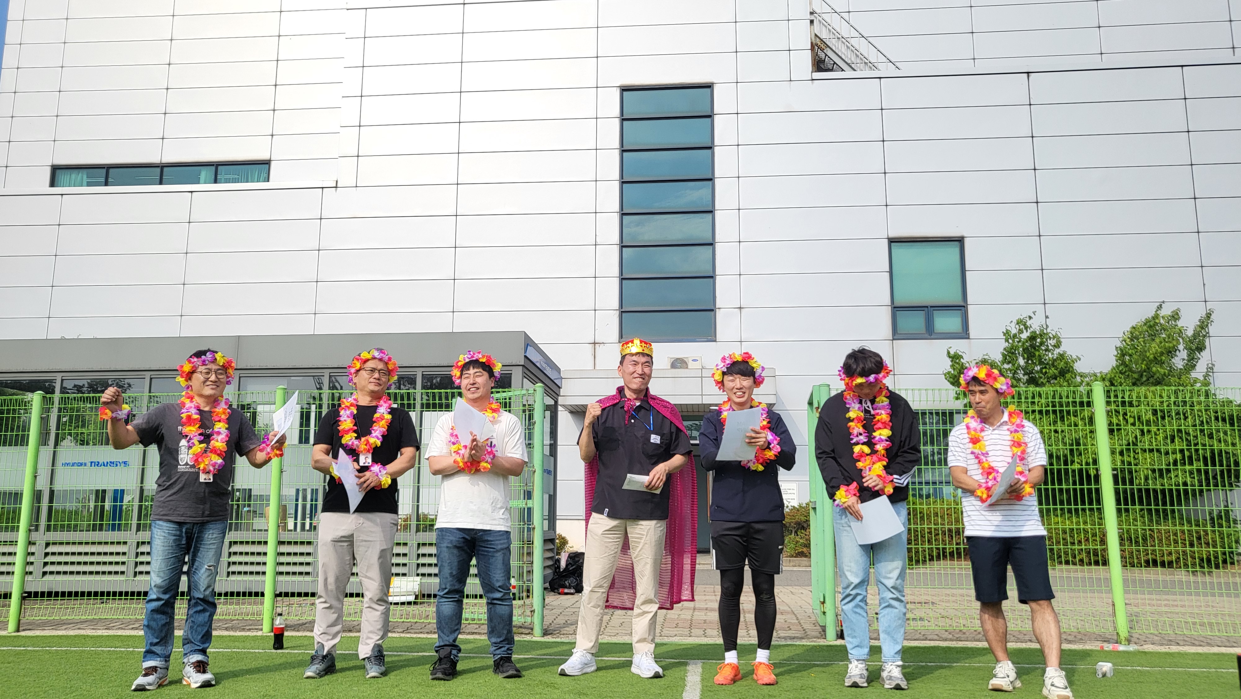전동화설계실 이희라 실장님(Harry)의 폐회식 멘트와 PT연구개발인사팀의 지원으로 MVP 6인에게는 5만 원의 상금과 꽃목걸이가 수여되었습니다. 유은동 인사팀장님(Maggie)이 직접 수상자들의 목에 꽃을 걸어주며 밝은 분위기와 유쾌함을 이끌어 냈습니다.