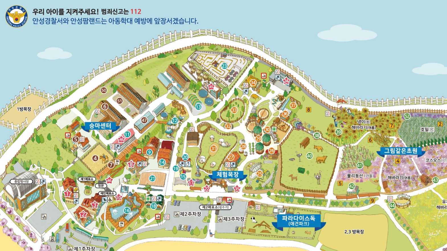 네이버 지도에 안성팜랜드를 입력하면 농협안성팜랜드 1, 2, 3 주차장이 검색되는데요. 저만의 주차 꿀팁을 공유해 드리면 종합행사장(1주차장 맞은편 주차장)에 주차하면 더욱 편리하게 입장할 수 있습니다. 물론 평일에는 주차장이 여유롭기 때문에 자유롭게 주차하시면 됩니다.
