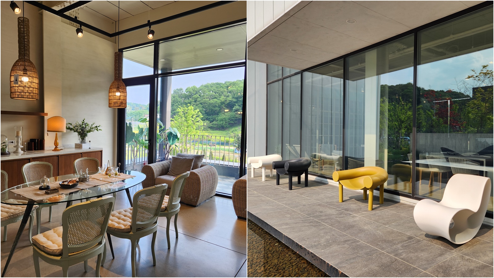 빌라드파넬은 용인시 처인구에 위치한 대형 카페 겸 가구 전문 회사입니다. 2022년 대한민국 조경대상을 수상했다는 명성에 맞게 이국적이고 모던한 외관이 눈길을 사로잡는데요. 내부로 들어오면 깔끔한 인테리어와 고급스러운 가구, 아기자기한 소품으로 마치 휴양지에 온 듯한 기분이 듭니다.