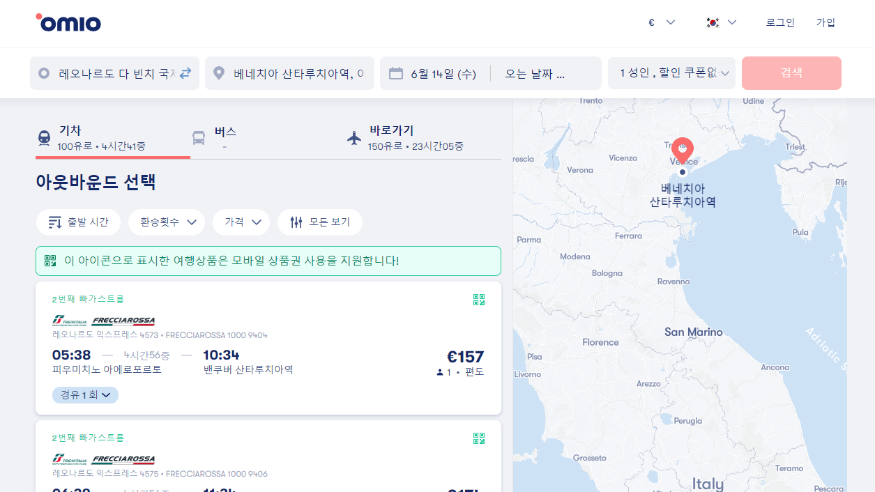 제가 가장 유용하게 잘 쓴 어플은 ‘오미오(OMIO)’라는 기차 어플입니다. 우리나라의 KTX나 SRT와 같이 유럽도 각 나라별로 다양한 기차 회사들이 있는데요. 오미오는 모든 유럽의 기차 스케줄을 확인할 수 있는 어플입니다.