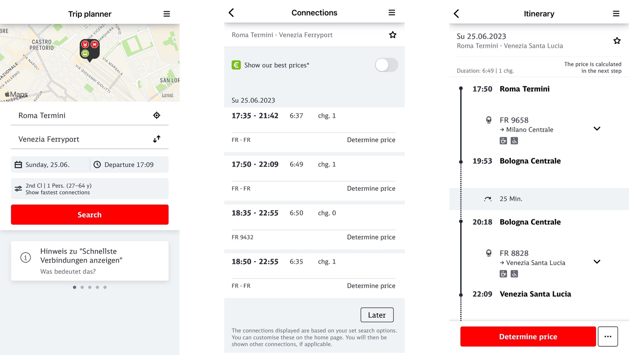 오미오와 비슷한 어플로는 ‘DB Navigator’로 유럽 내 모든 기차 회사를 통합한 어플입니다. 수수료가 오미오에 비해서 적지만 한국어는 지원하고 있지 않아 유의해야 합니다. 저는 이 두 개의 어플 외에도 각 나라의 철도 회사 어플을 다운 받아서 가격을 비교했는데요. 여러 어플을 활용해서 합리적인 구매를 하는 것도 중요하다고 생각합니다.