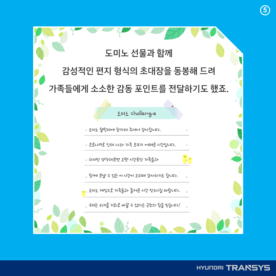 많은 현대트랜시스 임직원분들이 도미노 챌린지에 참여해 주셨으며