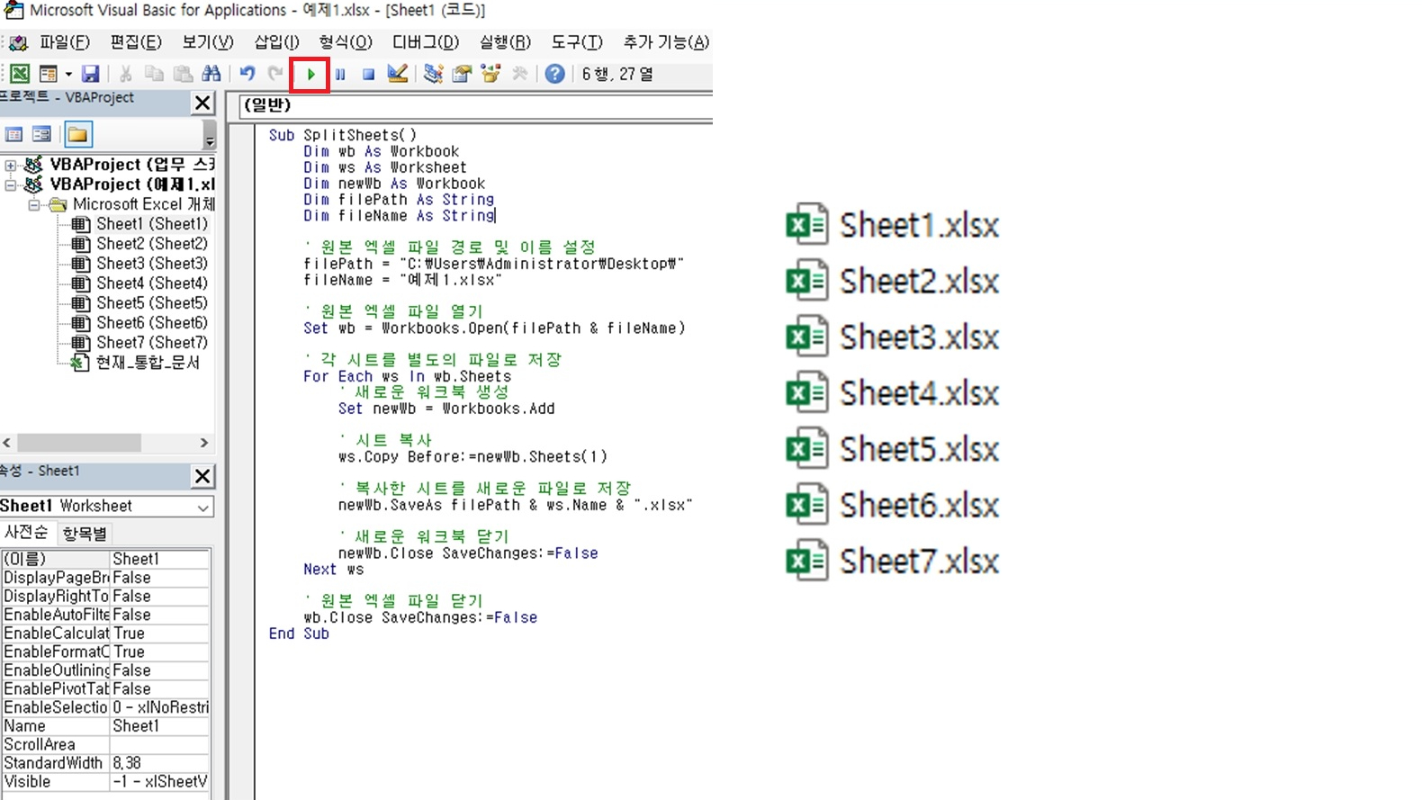 #1] 엑셀을 각 시트별로 분할하기