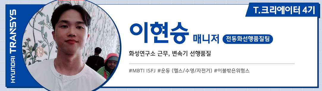 안녕하세요, 저는 T.크리에이터 4기이자 전동화선행품질팀에서 근무하고 있는 이현승 매니저입니다. 저는 작년부터 자전거 라이딩을 취미로 시작해 그 매력에 푹 빠져 있는데요.