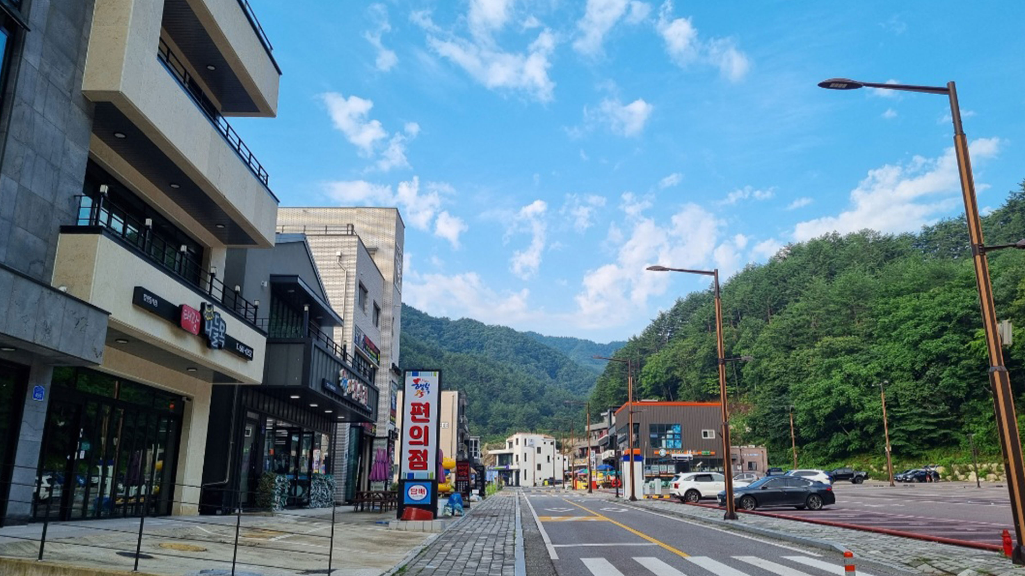 그리고 바로 앞에 소금강산 계곡이 흐르고 있어 아이들과 물놀이하기에도 좋으며 계곡 건너편에는 편의점, 마트, 식당 등이 있어 무척 편리합니다. 또한 오대산 자락에 있어 산행이나 트래킹을 즐기기에도 참 좋은 곳입니다.