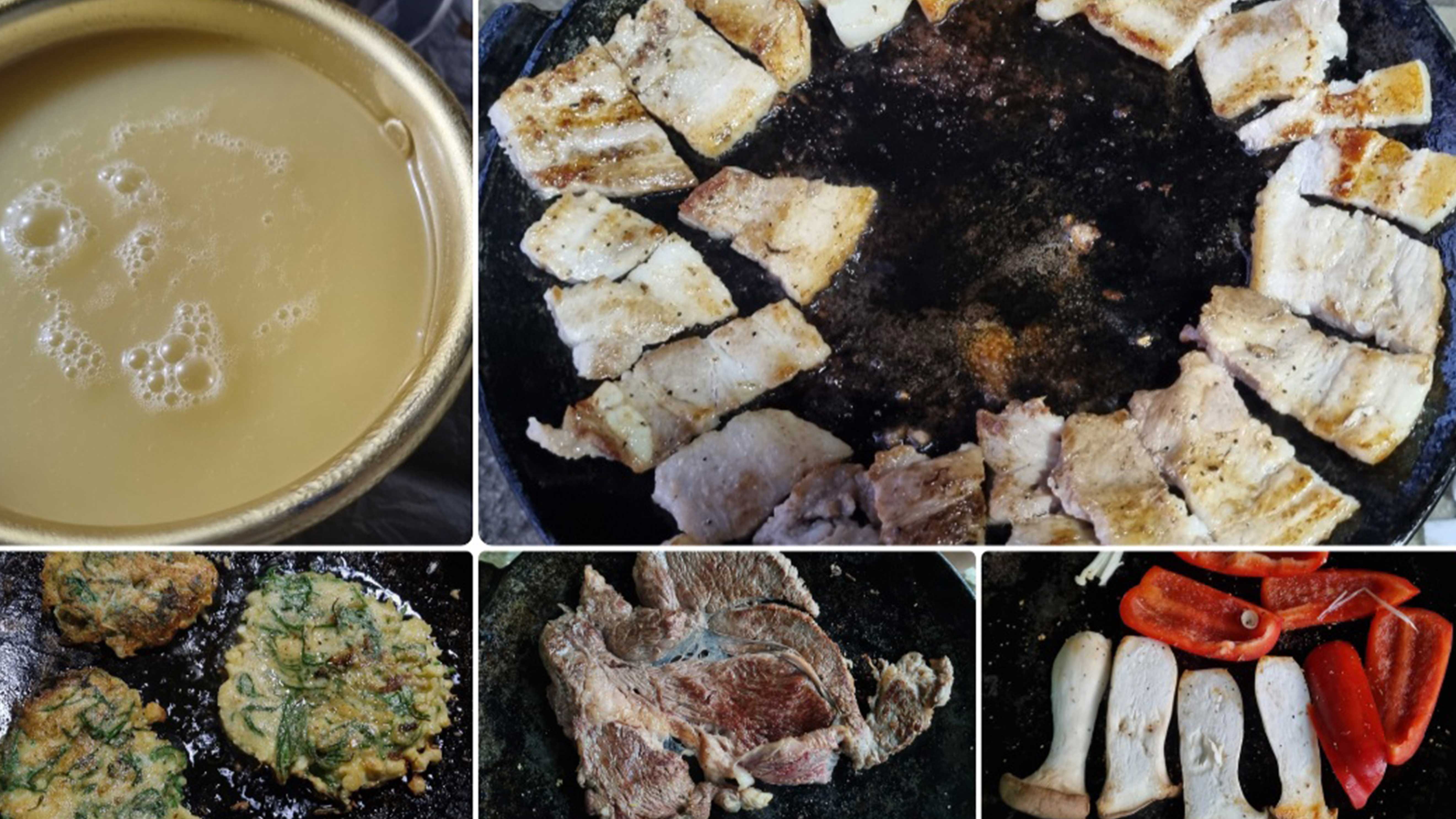 여러분은 캠핑의 꽃이 먹방이라는 말에 공감하시나요? ‘금강산도 식후경’이라고 물놀이를 하고 나니 배가 고파 바로 고기를 굽기 시작했는데요. 우중캠인 만큼 팽이버섯 부추전을 만들어 막걸리 한 잔을 함께 기울이니 지상낙원이 따로 없다고 느낄 만큼 너무 행복했습니다.