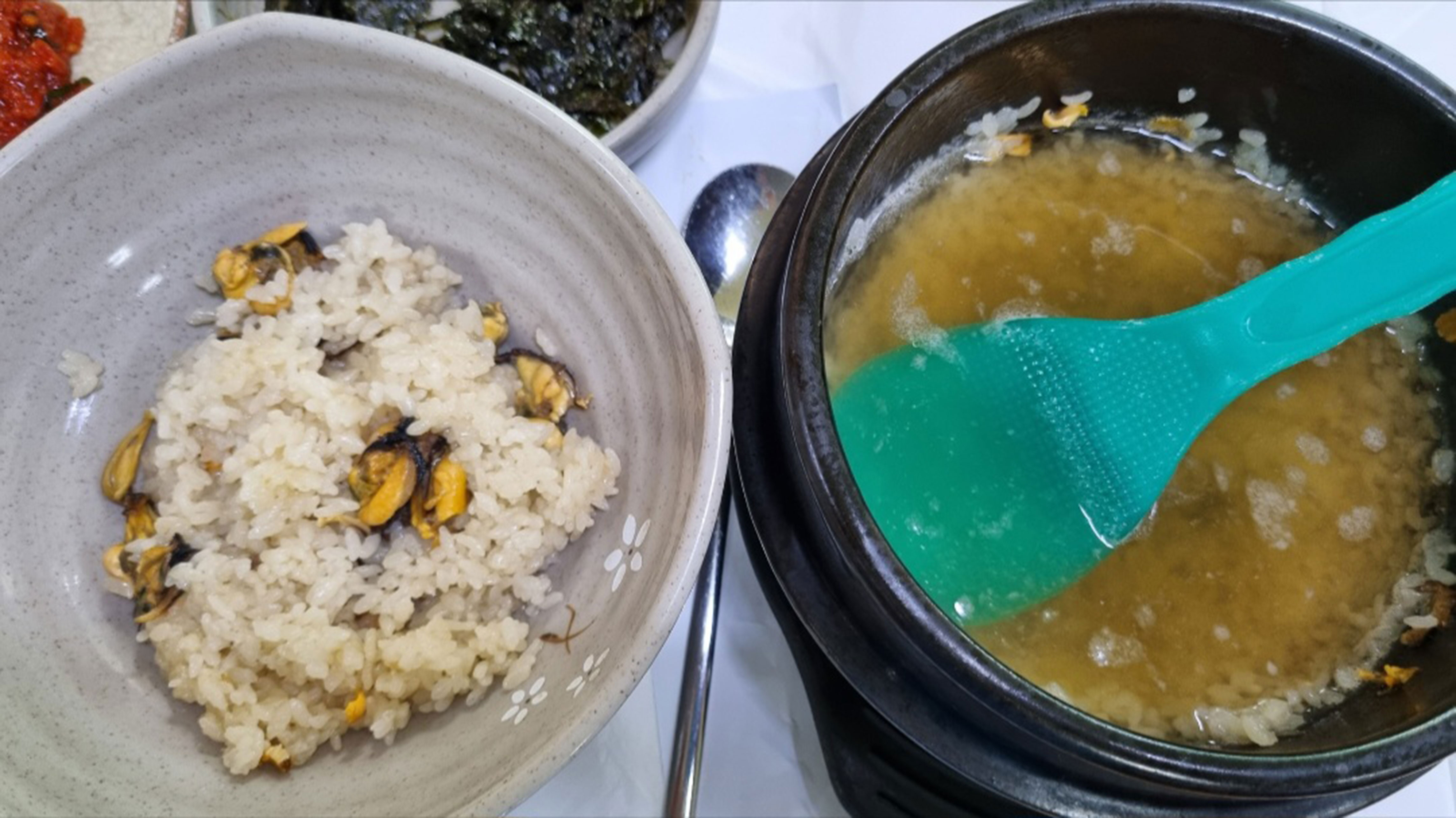 하지만 워낙 맛집 탐방을 좋아하는 캠우들이라서 믿고 가봤는데요. 역시나 추천할 수밖에 없는 확실한 이유가 있었습니다. 기본반찬이 많이 나오는 편은 아니었지만 반찬 자체가 맛있기도 했고 홍합밥만으로도 훌륭한 식사였습니다. 바다 풍미가 가득하면서 약간 짭조름하고 깊은 맛이 조화롭게 어우러져 정말 맛있었습니다. 그리고 아이들도 무척이나 잘 먹어서 기분 좋은 식사가 되었던 것 같습니다.