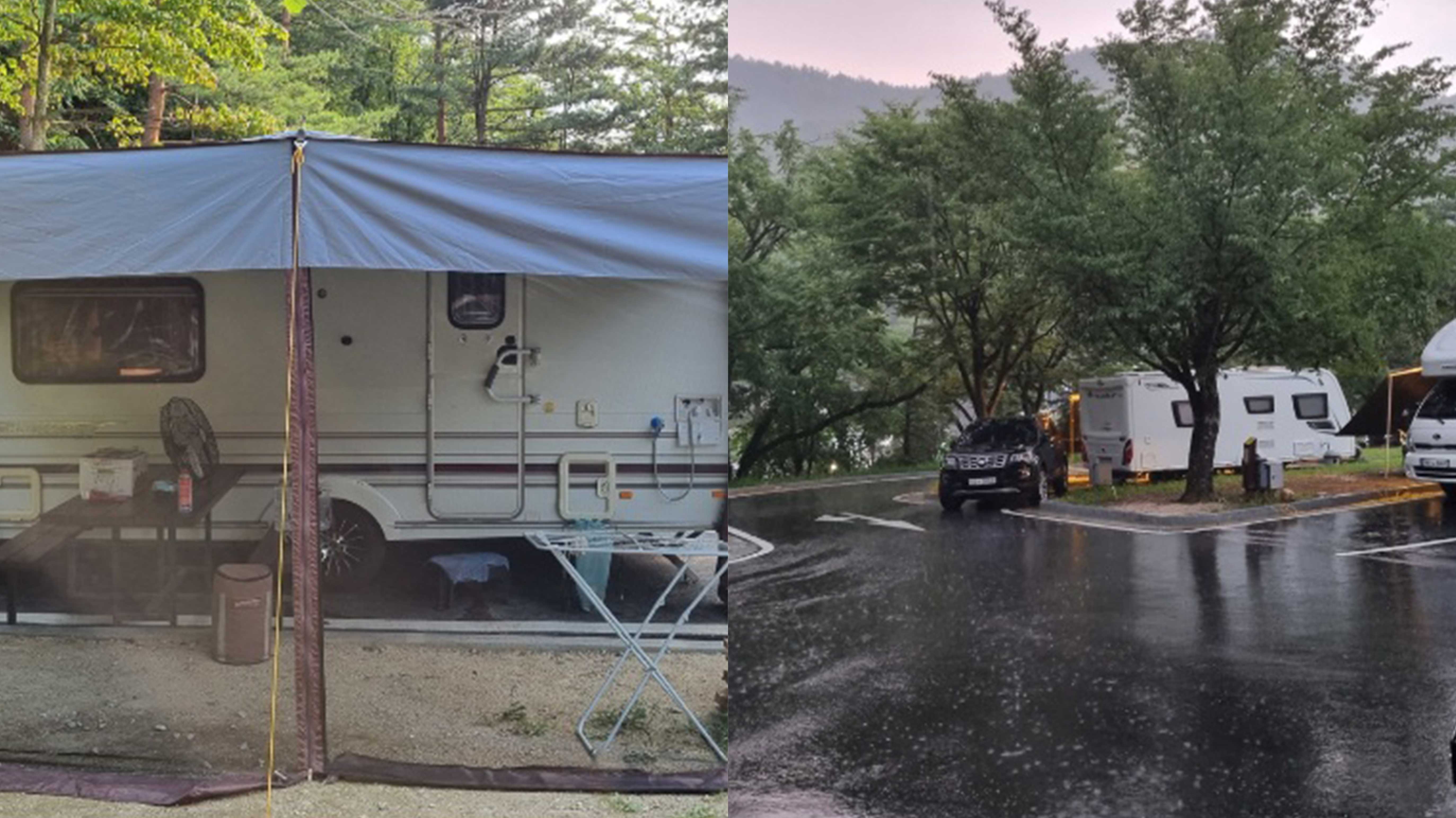 저희는 예약된 자차 카라반 C구역에 자리를 잡았습니다. 사이트의 컨디션은 아스팔트를 깔아서인지 작년보다 좋아지긴 했지만, 여전히 경사가 조금 있다는 것을 느낄 수 있었는데요. 그래도 청수와 오수를 바로 해결할 수 있는 직배수가 있어 아주 좋았습니다.