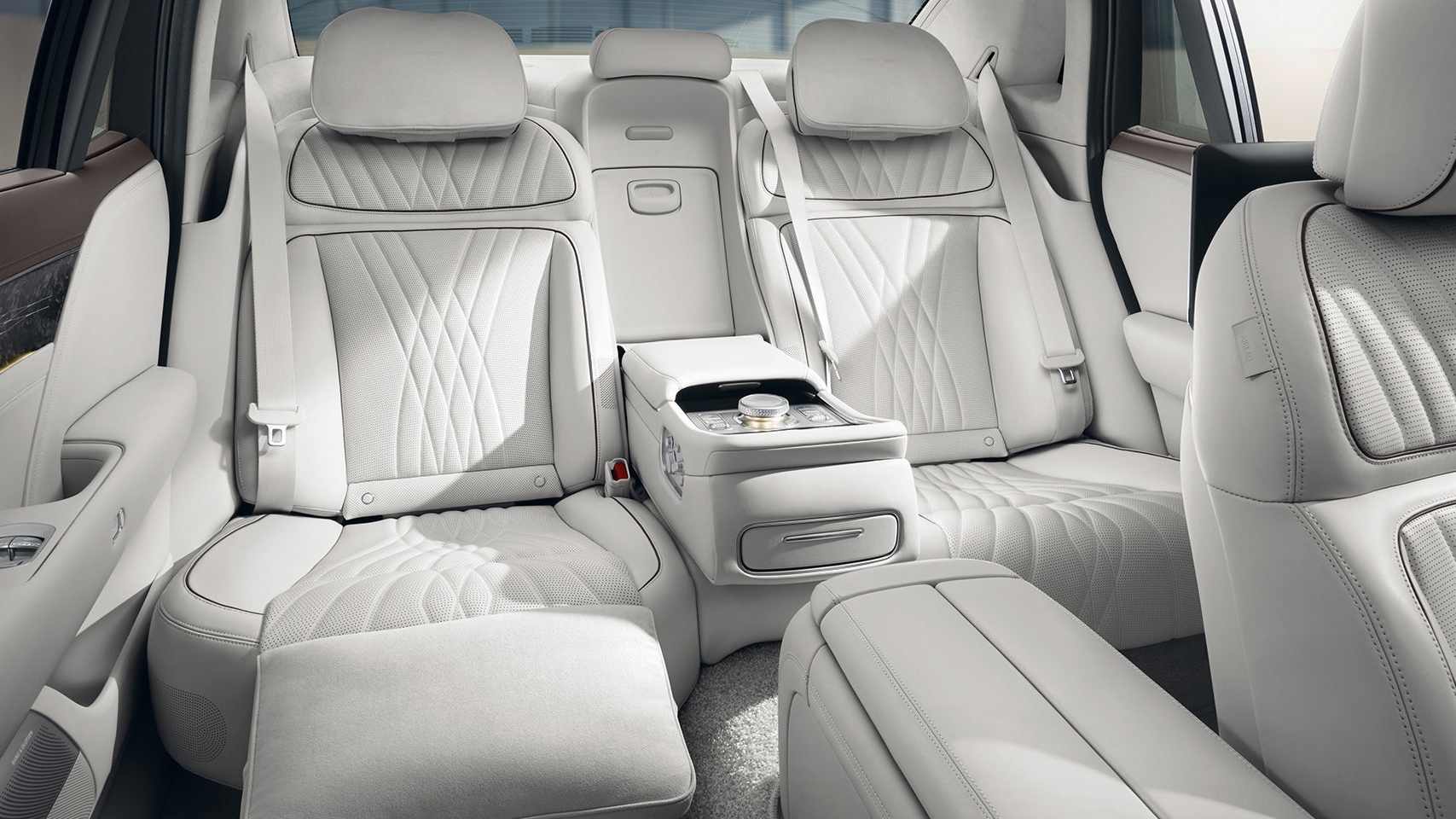 또한 기능적인 면도 우수한데요. 1열 헤드레스트는 전동으로 작동하며 내부에 스피커가 포함되어 있고, 2열 헤드레스트에는 쇼퍼드리븐 오너를 위한 목베개와 윙아웃 헤드레스트가 마련되어 있습니다.
