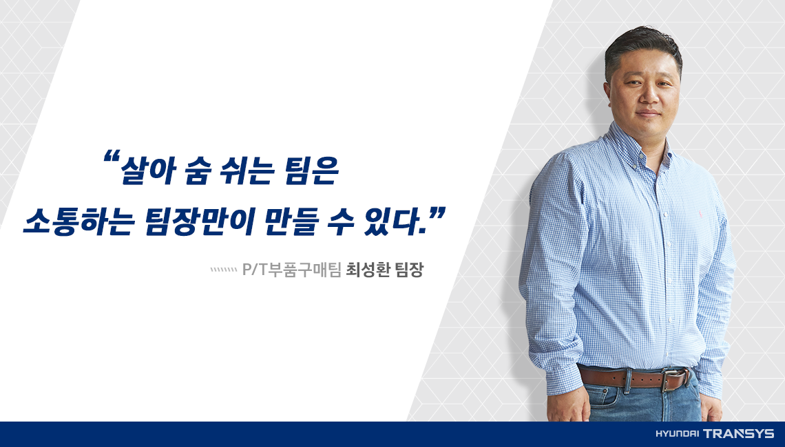 어려운 시기임에도 불구하고 회사의 정상화를 위해 두 발로 뛰는 이들이 있기에 현대트랜시스는 오늘도 내일도 계속해서 나아갈 수 있습니다. ‘워킹 해피투게더’를 외치며 오늘도 팀원들과 함께 열심히 뛰고 있을 구매본부 팀장님들을 응원합니다.