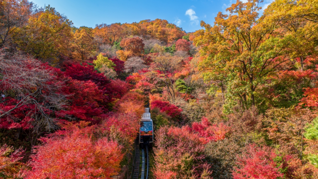 모노레일을 타고 5분 정도 올라가면 2승강장에 도착하는데요. 제가 갔을 때는 아직 단풍이 다 들지 않았지만, 단풍이 만연할 때 모노레일을 타면 양쪽으로 울긋불긋한 단풍길을 지나는 멋진 경험을 할 수 있겠구나 하는 생각이 들었습니다.
