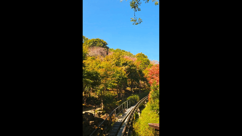 모노레일을 타고 5분 정도 올라가면 2승강장에 도착하는데요. 제가 갔을 때는 아직 단풍이 다 들지 않았지만, 단풍이 만연할 때 모노레일을 타면 양쪽으로 울긋불긋한 단풍길을 지나는 멋진 경험을 할 수 있겠구나 하는 생각이 들었습니다.