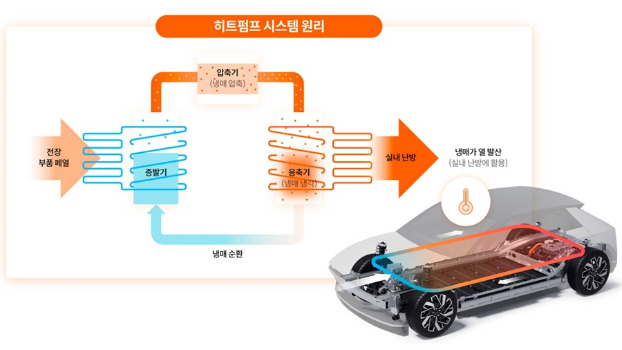 현대차그룹의 전기차는 버려지는 에너지를 이용하는 ‘히트펌프’ 기술로 전기차의 기존 실내 난방 방식의 단점을 극복하고 있습니다. 히트펌프는 겨울철 실내 난방 효율을 높여 전비 증가를 도모하는 기술로 일반적인 저온에서 10% 이상의 전비 향상 효과를 볼 수 있습니다.