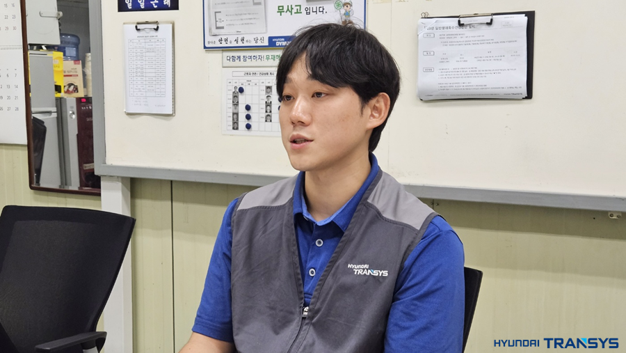 강성대 반장: 고등학교 때부터 용접을 배웠고 전공으로 선택했습니다. 제가 가진 용접 기술로 새로운 가치를 만들어내는 게 너무 보람 있고 적성에도 맞았어요. 저는 일을 하더라도 재미가 있어야 한다고 생각합니다. 재미를 느끼면서 일을 해야 능률이 오르잖아요. 일을 하더라도 재미있게 할 수 있는 일을 하고 싶어서 공정개선반을 선택하게 됐습니다.