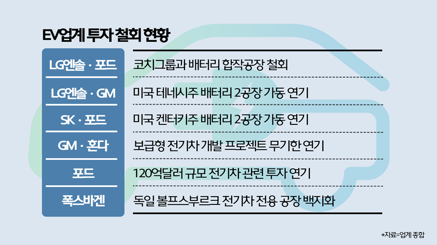 블룸버그뉴에너지파이낸스(BNEF)에 따르면, 올해 전기차 배터리 수요 증가율은 45%로 2021년의 100%에서 크게 줄어들었습니다. 이러한 분위기 속에 자동차 업계는 전기차 투자 철회 움직임을 보이고 있습니다. 포드는 전기차 관련 투자를 연기했고, GM은 혼다와 함께 추진해오던 전기차 개발 프로젝트를 취소했습니다. 폭스바겐 그룹도 전기차 전용 공장 설립 계획을 백지화하고, 배터리 생산 공장 설립도 무기한 연기했습니다.