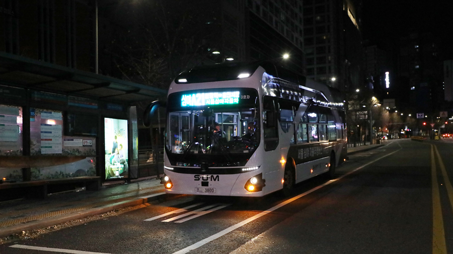 또한, 서울시는 4일부터 세계 최초로 심야 자율주행 버스의 정기 운행을 시작했습니다. 이 버스는 합정역과 동대문 사이 중앙버스전용차로 9.8km 구간을 순환하며, 평일 밤 11시 반부터 다음 날 새벽 5시 10분까지 운행 중입니다.
