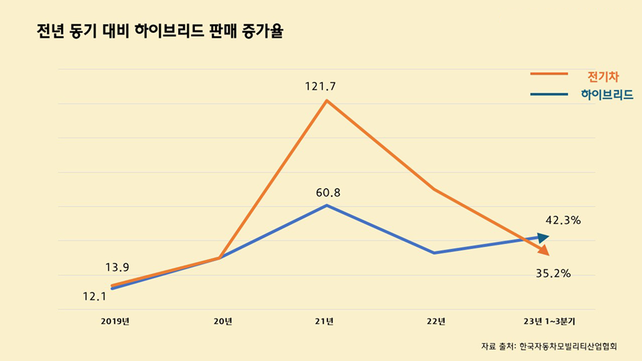 2. 하이브리드 판매 증가율, 전기차 추월
