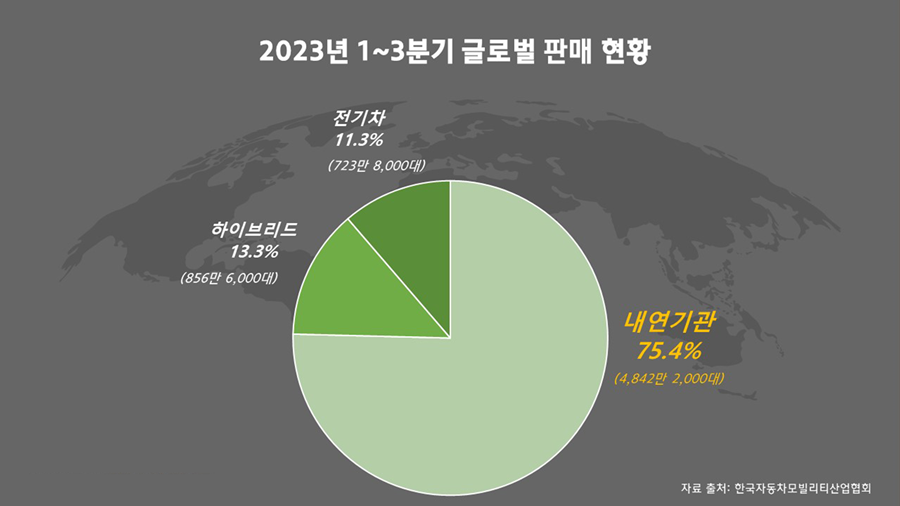 전기차 바람이 본격적으로 불기 시작한 2019년 이후 처음으로 하이브리드 판매 증가율이 전기차를 넘어설 것으로 전망되고 있습니다. 한국자동차모빌리티산업회의 글로벌 시장의 친환경차 판매량을 분석한 결과에 따르면, 1~3분기 글로벌 전기차 판매량은 723만 8,000대로 지난해 동기간보다 35.2% 증가했습니다. 반면 이 기간 하이브리드 차는 충전이 가능한 플러그인 하이브리드가 279만 9,000대, 일반 하이브리드가 576만 7,000대가 각각 팔려 작년보다 42.3% 증가했습니다.