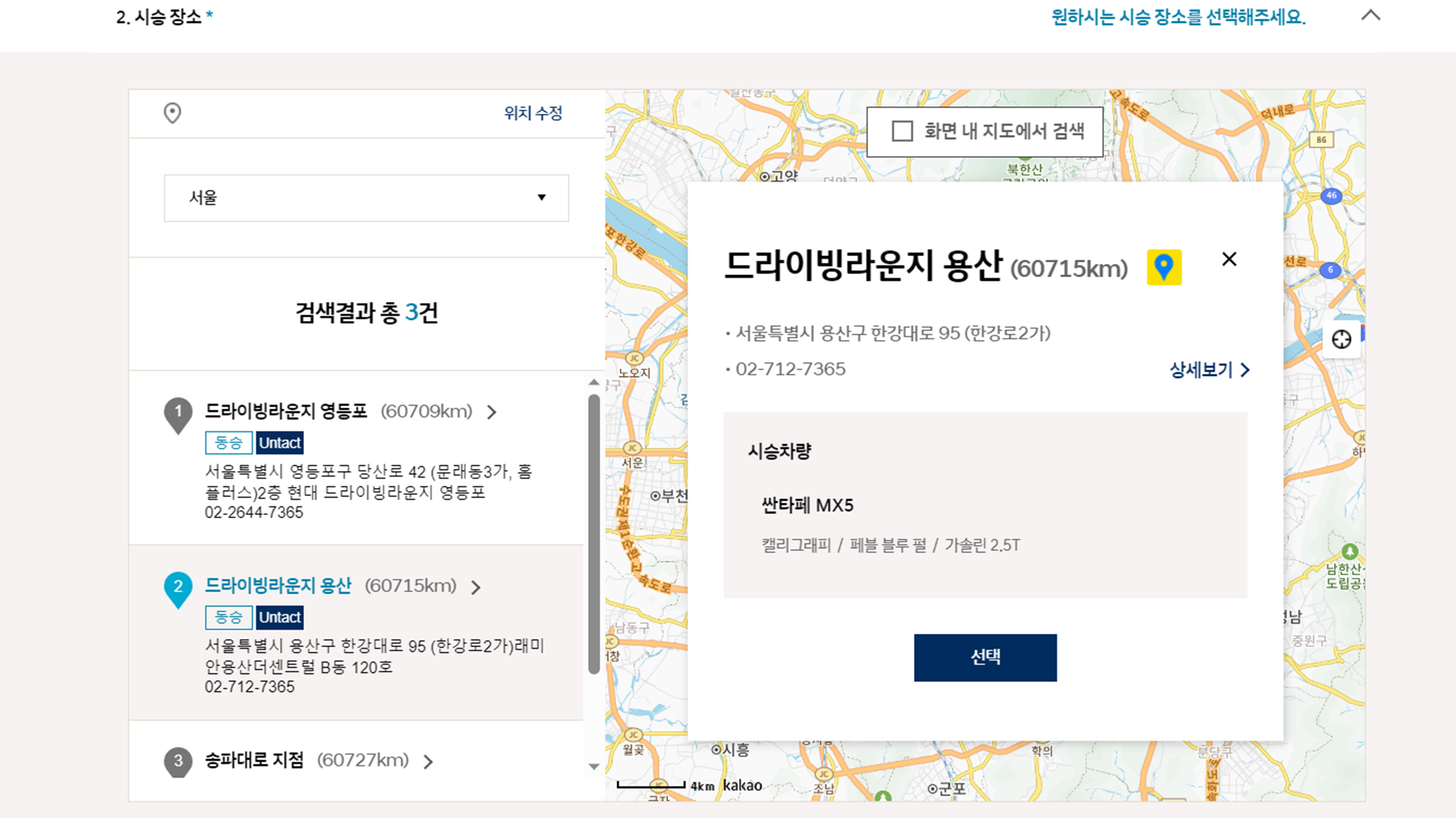 2. 시승 장소 선택