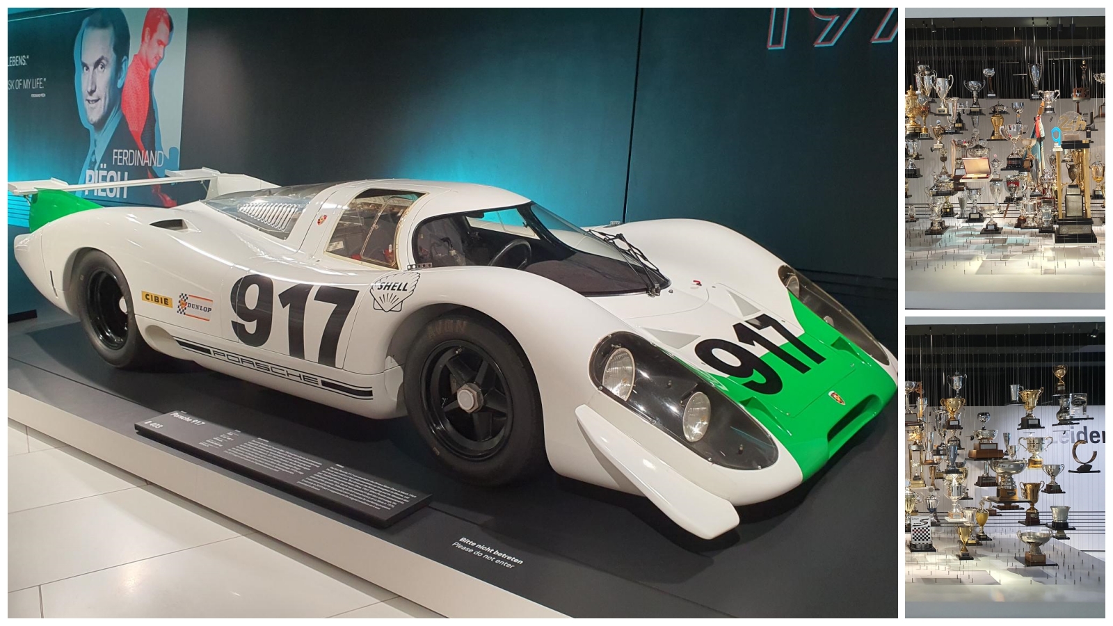 포르쉐의 레이싱카는 다양한 레이싱 대회에 출전했다는 것은 알고 있었지만, 전시된 수많은 트로피를 보니까 더욱 놀라웠습니다. 그 중 에어로 다이내믹을 적용한 포르쉐 917은 월드 스포츠카 챔피언십에서 여러 번 우승했던 자동차라고 합니다.