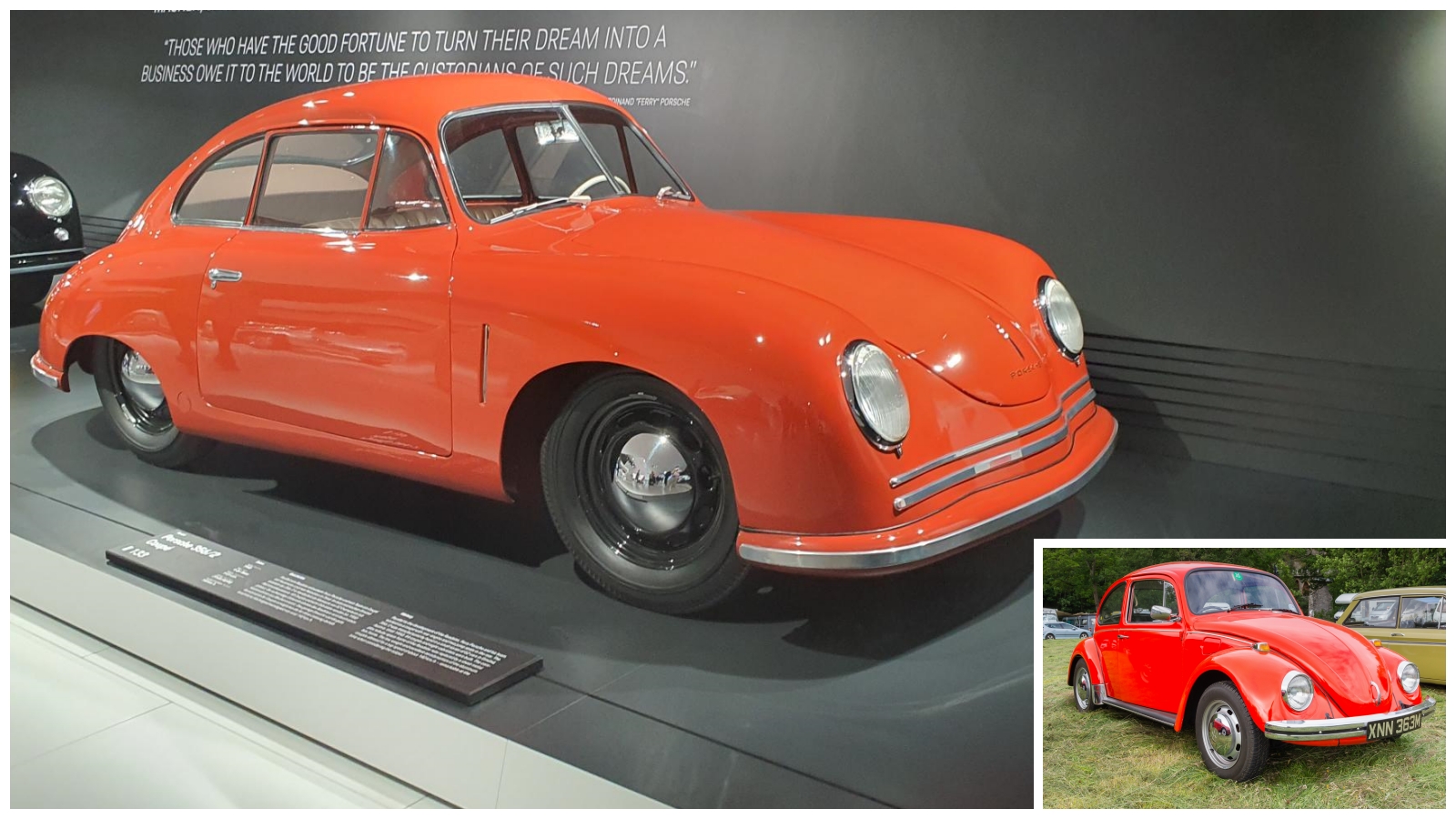 포르쉐의 첫 자동차는 1948년 만들어진 포르쉐 356입니다. 폭스바겐 비틀과 많이 닮지 않았나요? 포르쉐 356 개발을 주도한 페리 포르쉐는 폭스바겐 비틀의 아버지인 페르디난트 포르쉐 박사의 아들로, 아버지가 설계한 비틀을 기반으로 만든 것이 포르쉐 356이라고 합니다. 스포츠카의 대명사답게 처음 만든 자동차가 스포츠카라는 점이 신기했습니다.