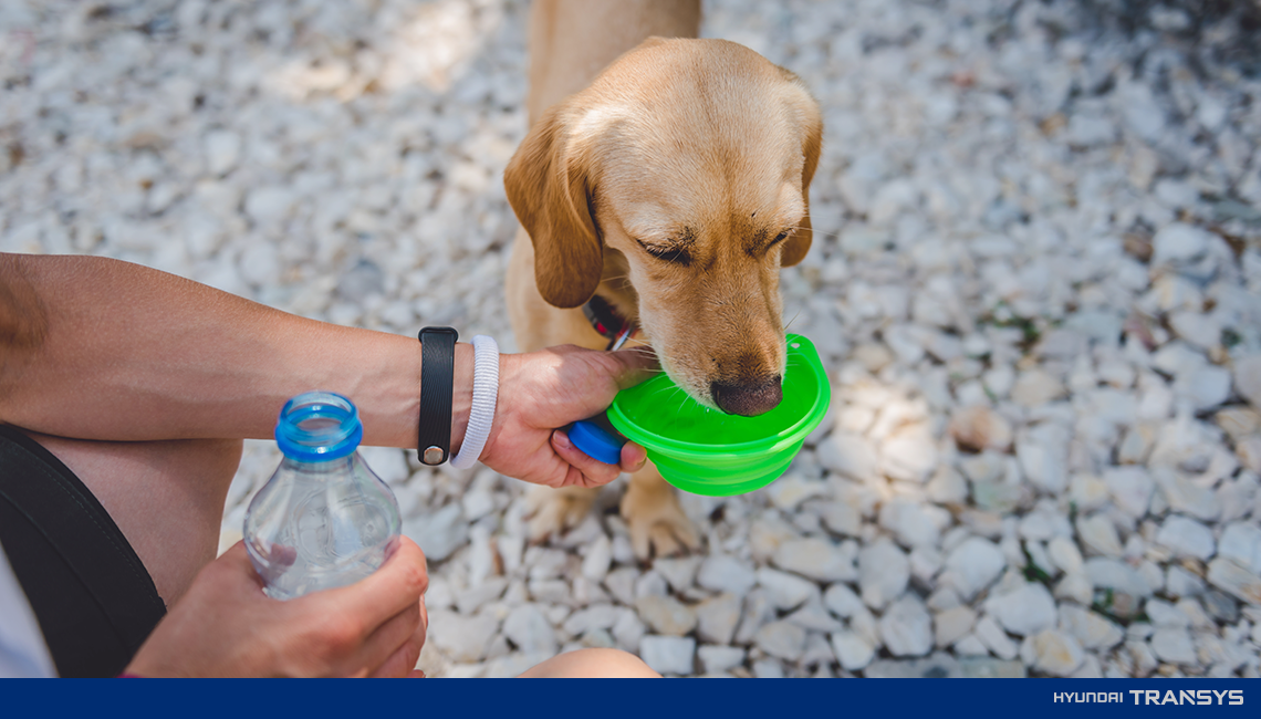 더운 여름철 강아지는 사람과 마찬가지로 물을 많이 섭취합니다. 그뿐만 아니라 자동차에 탑승하는 것이 아직 익숙하지 않은 강아지의 경우 긴장을 하면 배변이 급해질 수 있죠. 따라서 자동차에 탑승하기 전에 배변 활동을 미리 할 수 있도록 가벼운 산책을 하는 것이 좋습니다. 만약 드라이브 중에 강아지가 물을 먹고 싶어 한다면 물을 한꺼번에 많이 주기보다는 자주 조금씩 물을 보충해 주세요.
