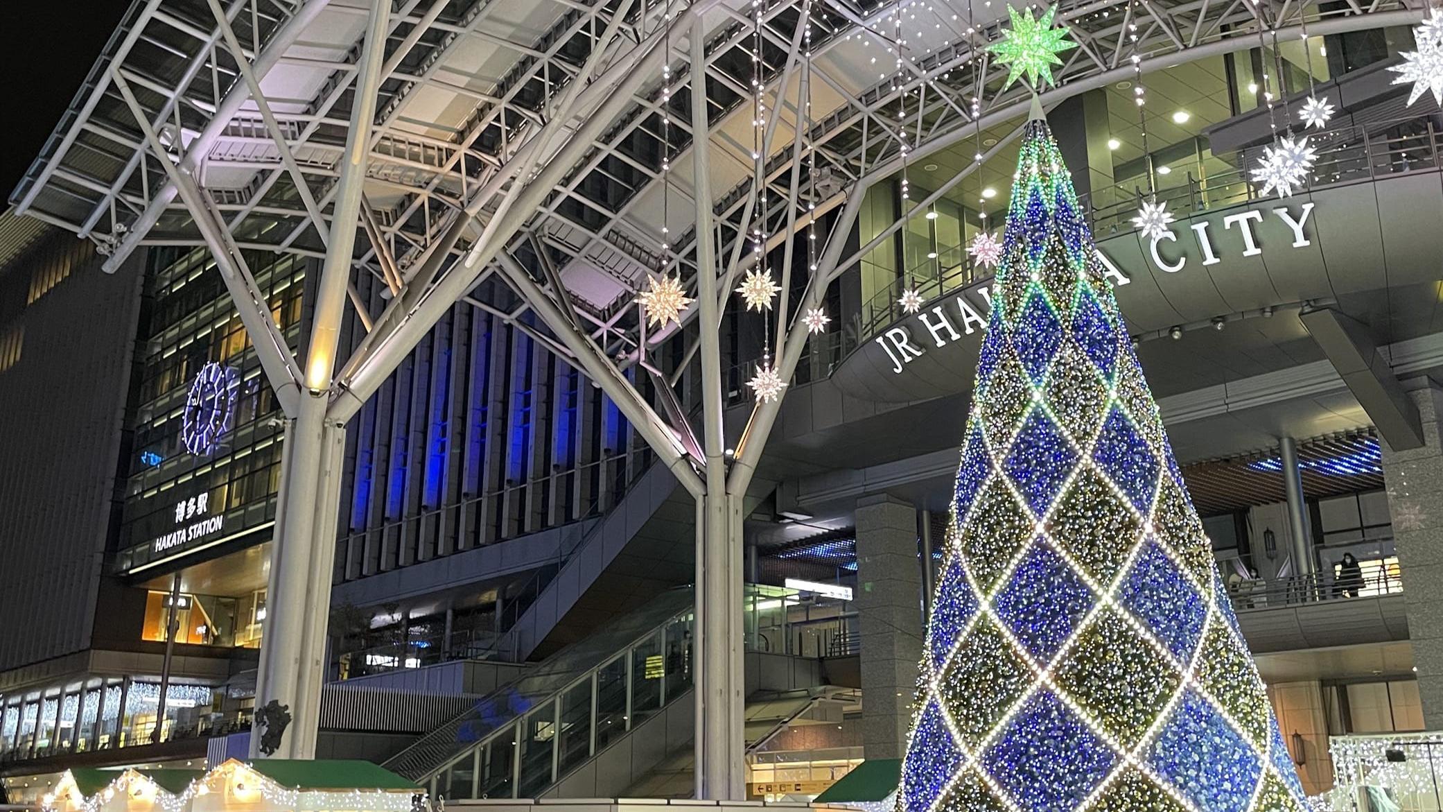 하카타역은 항상 사람들로 붐비는 곳입니다. 제가 방문했을 때는 크리스마스 트리와 일루미네이션을 배경으로 캐럴이 흘러나와 연말 겨울 분위기를 물씬 풍기고 있었는데요. 하카타 역 광장에는 작은 플리마켓이 운영되고 있었습니다. 삼삼오오 테이블에 모여 광장에서 판매하는 음식과 술을 즐기며 한 해를 마무리하는 모습이 인상 깊었습니다.