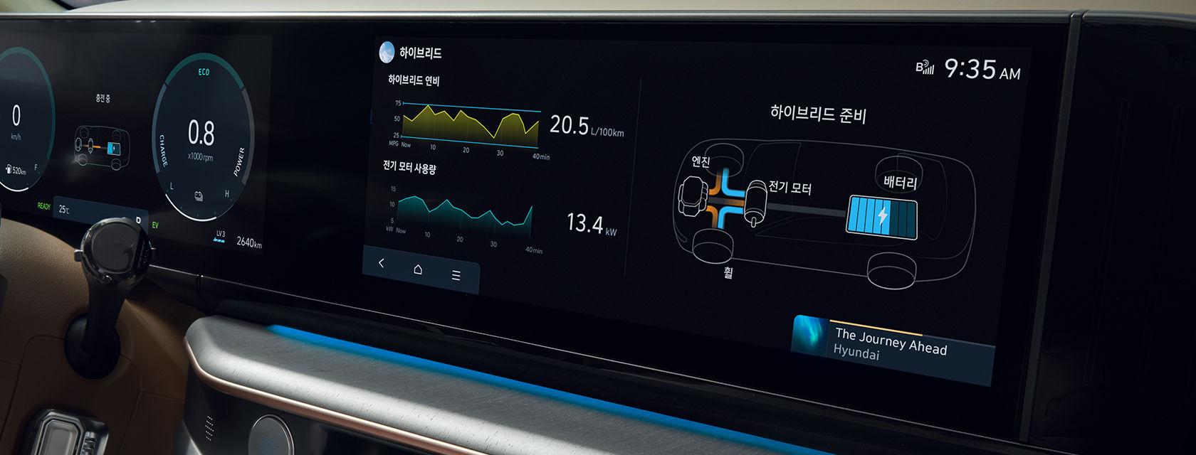 중요한 변화도 있습니다. 현대차는 하이브리드 시스템에 e-모션 드라이브라는 혁신적인 기술을 도입합니다. 전기모터가 구동만 담당하는 것을 넘어 승차감이나 접지력의 변화를 최소화하고, 높은 조향성과 빠른 움직임, 안정적인 주행성을 이끌어낸다는 개념입니다. 하이브리드 시스템이 친환경을 넘어 주행안전성과 승차감까지 개선할 수 있음을 증명한 한 차원 진보된 개념입니다.