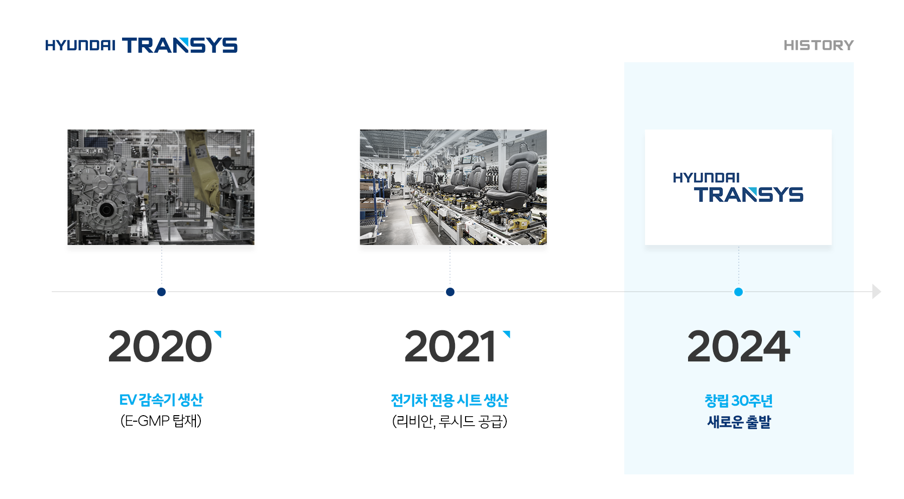 지난 30년의 여정은 끊임없는 도전과 혁신의 역사였습니다. 현대트랜시스는 지난 30년 동안 쌓아온 성과와 경험을 바탕으로 새로운 30년을 시작합니다. 세상을 바꾸는 모빌리티 기업으로 성장해 나갈 현대트랜시스의 미래에 많은 기대 부탁드립니다.