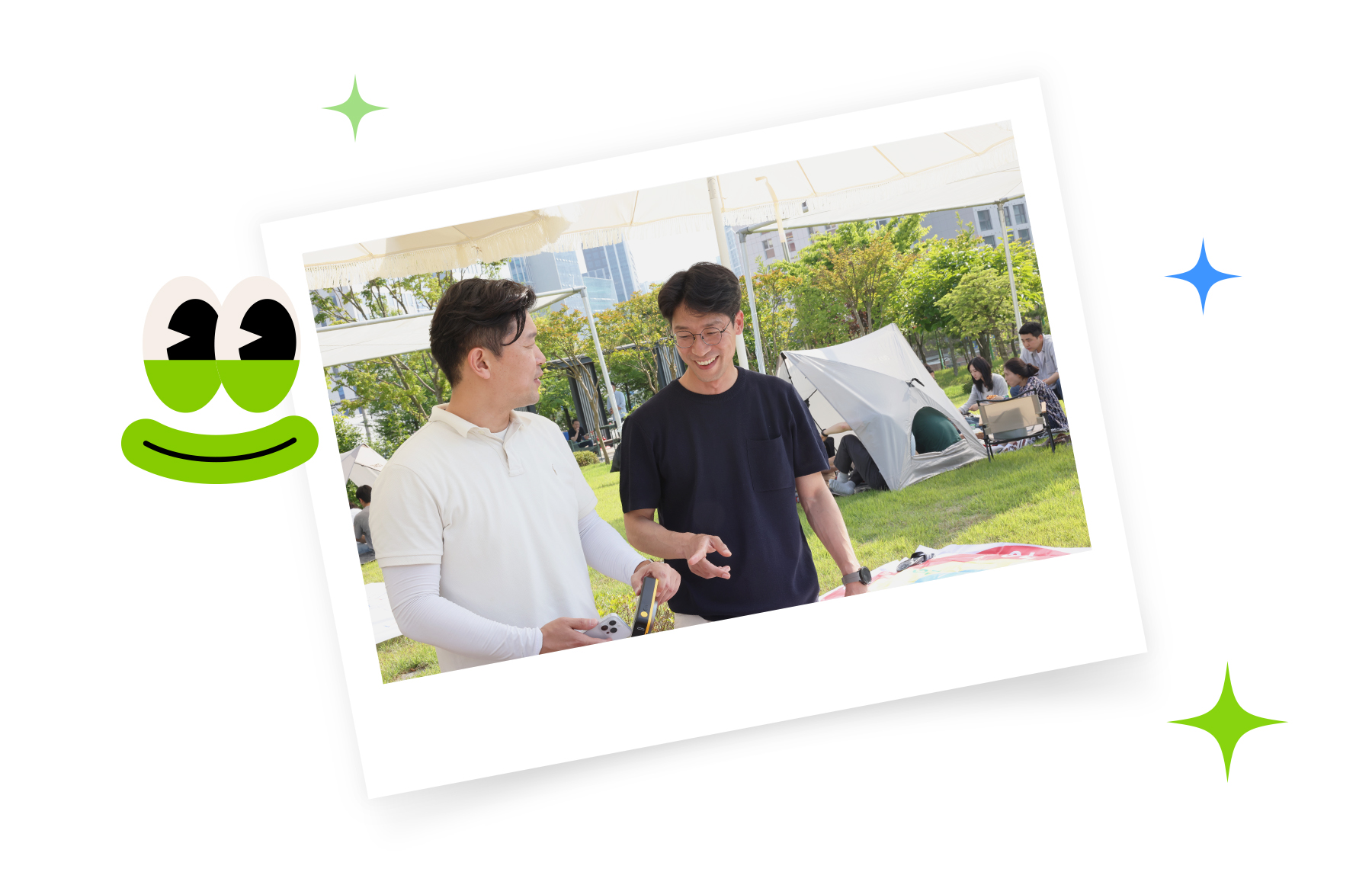 그중 하나가 바로 임직원 소통과 힐링을 위한 조직문화 프로그램 ‘비전 포레스트’ 행사입니다. 비전 포레스트는 사내 정원 등 일터를 소통과 힐링의 장소로 활용하여 음악 공연 등 작은 이벤트로 직원들의 바쁜 일상을 리프레시하고 구성원간 소통을 지원하는 형태로 진행되어왔는데요. 올해는 팀원, 팀간 협업을 돕는 ‘콜라보레이션 피크닉’으로 첫 시작을 알렸습니다.