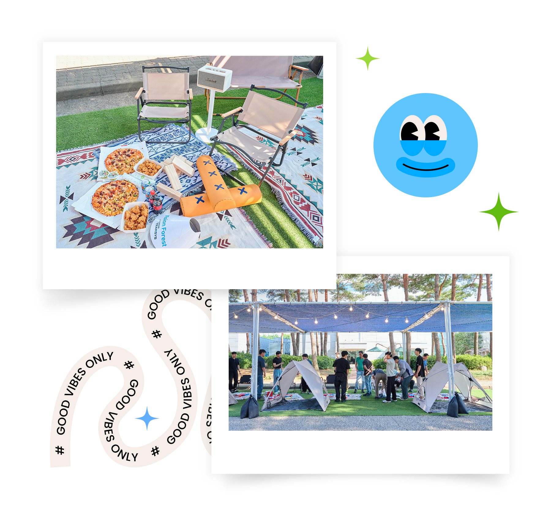 그중 하나가 바로 임직원 소통과 힐링을 위한 조직문화 프로그램 ‘비전 포레스트’ 행사입니다. 비전 포레스트는 사내 정원 등 일터를 소통과 힐링의 장소로 활용하여 음악 공연 등 작은 이벤트로 직원들의 바쁜 일상을 리프레시하고 구성원간 소통을 지원하는 형태로 진행되어왔는데요. 올해는 팀원, 팀간 협업을 돕는 ‘콜라보레이션 피크닉’으로 첫 시작을 알렸습니다.