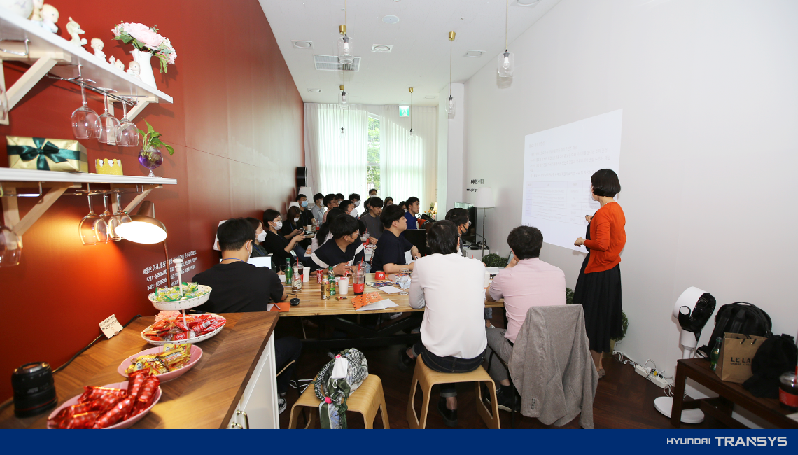 A. 예전 현대다이모스부터 ‘사내기자단’ 이라는 유사한 조직을 운영했습니다. 다만 사내기자단은 각 부문 별로 할당된 인원에 따라 팀장님들로부터 선정을 당하는(?) 방식이었죠. 그렇기에 정기적인 기사 제보 정도로 최소한의 역할을 맡길 수밖에 없었어요. 하지만 두 회사가 통합되고 내부의 조직문화가 빠르게 변화하는 흐름 속에서 ‘콘텐츠 제작에 관심이 많은 직원들이 있지 않을까?’라는 생각이 들었어요. 그렇게 확신에 찬 척했지만 반신반의로 올해 초 모집공고를 냈고, 다행히 많은 직원분들이 신청해 주셨기에 최종 인원을 선발하여 얼마 전 오리엔테이션과 교육을 진행하는 <2020년 T.컨퍼런스>를 열고 조직 운영을 시작할 수 있었어요.