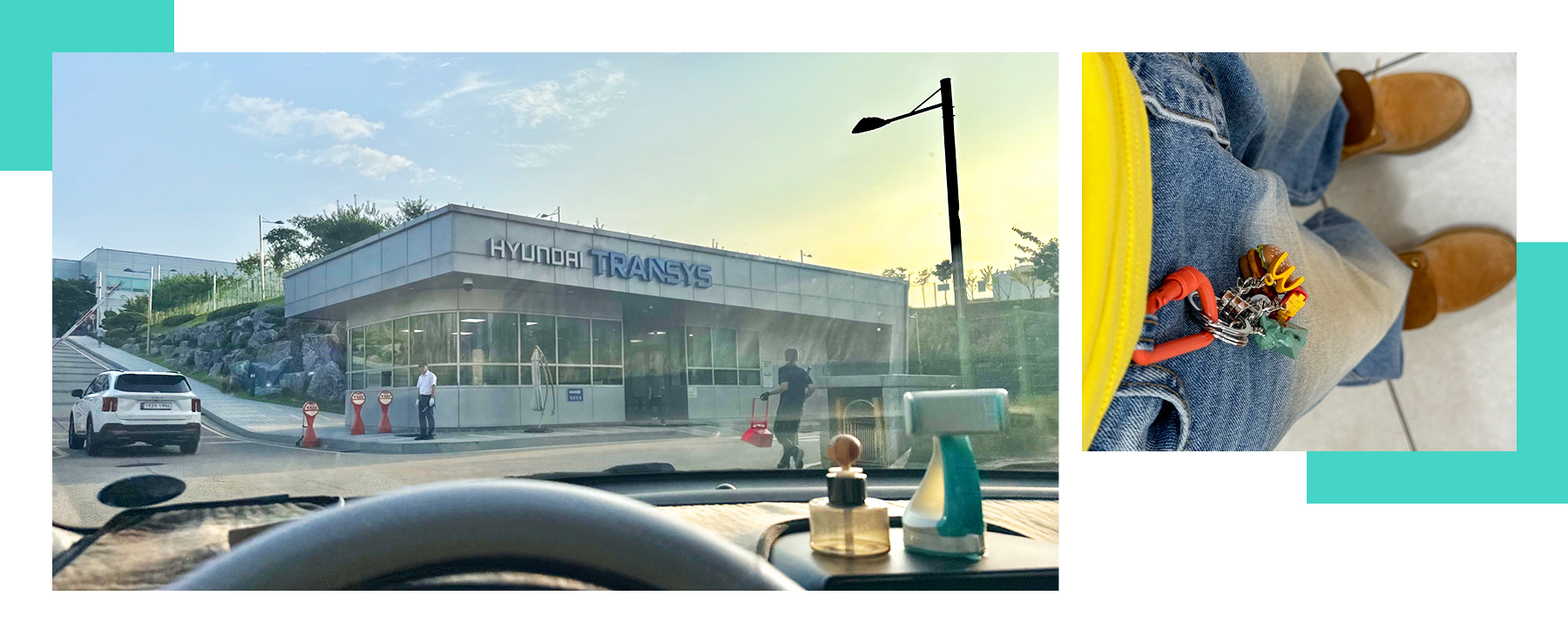 대부분 자차로 출근합니다. 몸이 편한 것도 있지만, 유연근무제로 시간에 구애받지 않고 출퇴근할 수 있어서 만족도가 높아요. 또, 저는 자율복장을 누구보다 잘 활용하는 편인데요. 평소 스타일이 화려한 편이라 친구들은 정말 그렇게 입고 출근하냐며 묻지만, 실제로도 자주 알록달록한 복장으로 출근하고 있습니다(물론 중요한 일정이 있을 때는 단정하게 맞춰 입습니다). 요즘같이 더울 때는 시원한 반바지나 밝은 색상으로 입는 주변 동료들도 많아요.