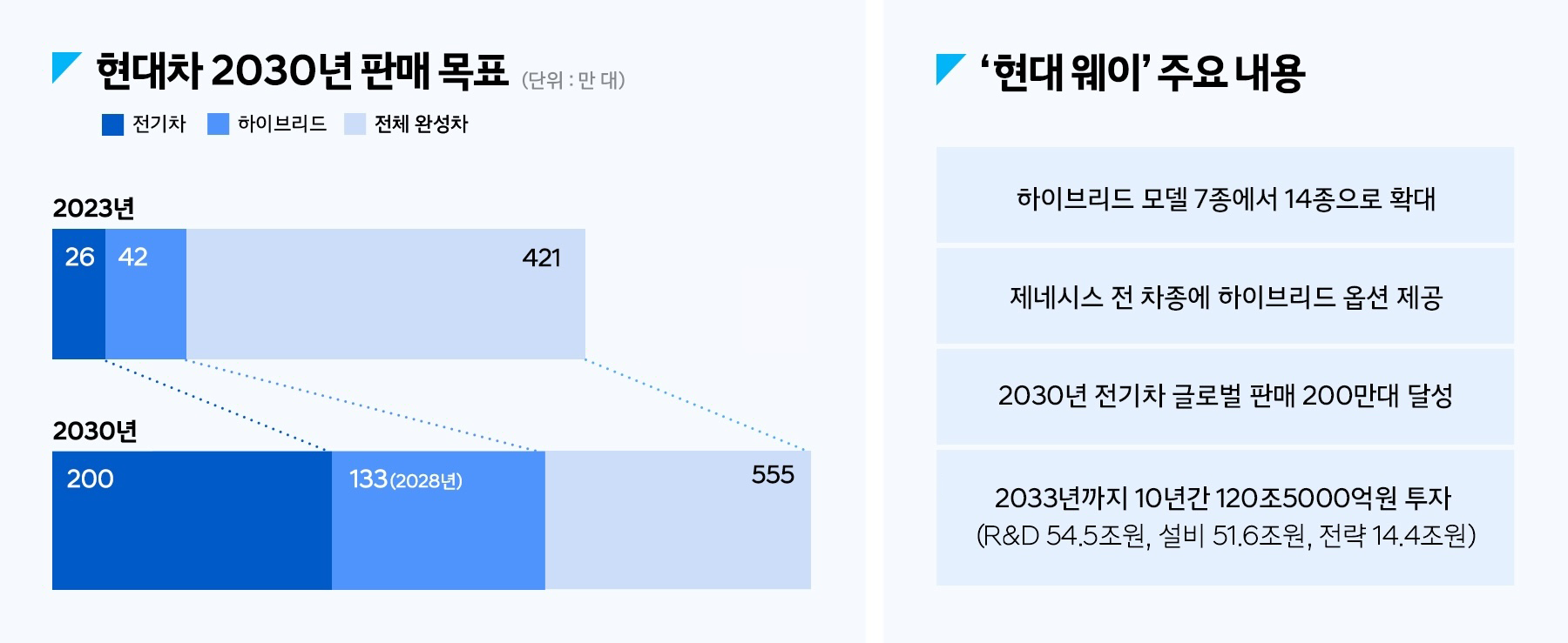 2028년에는 글로벌 시장에서 총 133만 대의 하이브리드차를 판매할 계획입니다. 현대차는 글로벌 주요 거점의 공장을 적극 활용해 하이브리드 차종 투입을 통한 혼류 생산 체제를 도입하고 부품 공급망 확보를 추진하고 있습니다.