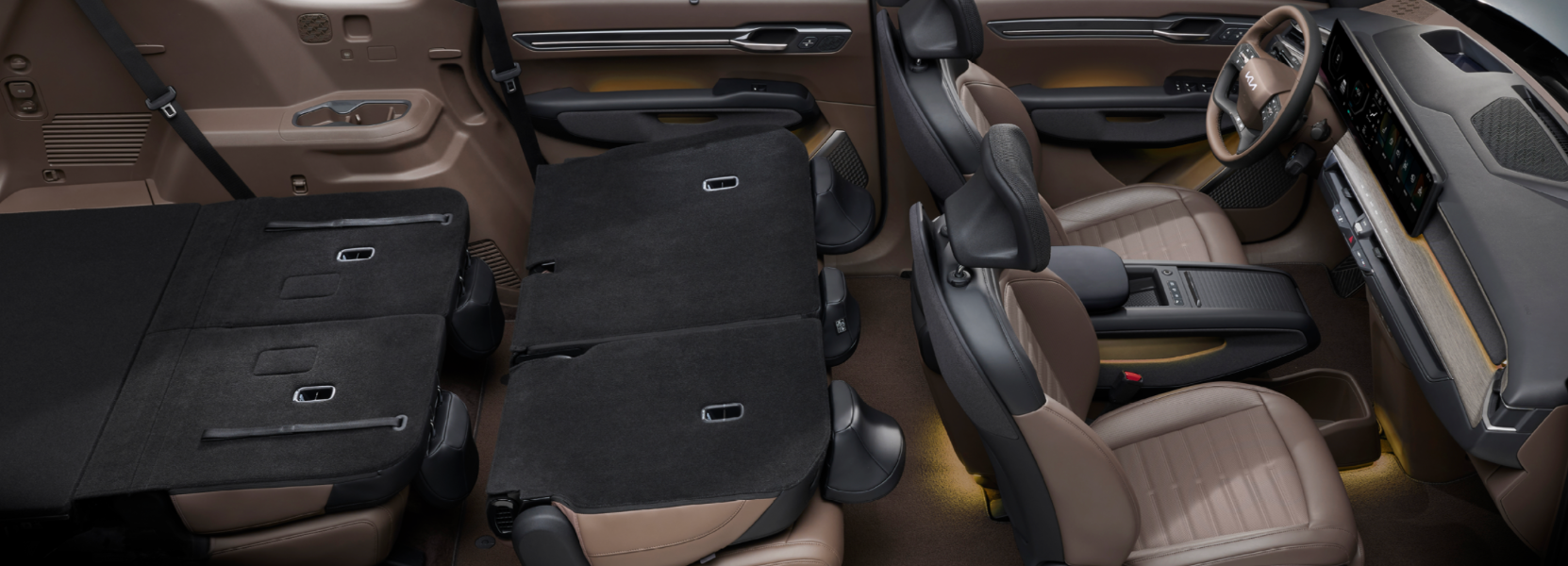 어린 자녀와 함께 캠핑을 즐기는 가족이라면 틸팅형 원터치 워크인 기능이 적용된 EV9 7인승 기본 시트 사양을 추천합니다. 일반적으로 3열 시트에 진입하기 위해서는 2열 시트에 장착한 카시트를 탈거하고 다시 부착해야 하는 불편함이 존재했지만, 이 기능 덕분에 버튼 하나로 손쉽게 3열로 진입하기 위한 공간을 확보할 수 있습니다.