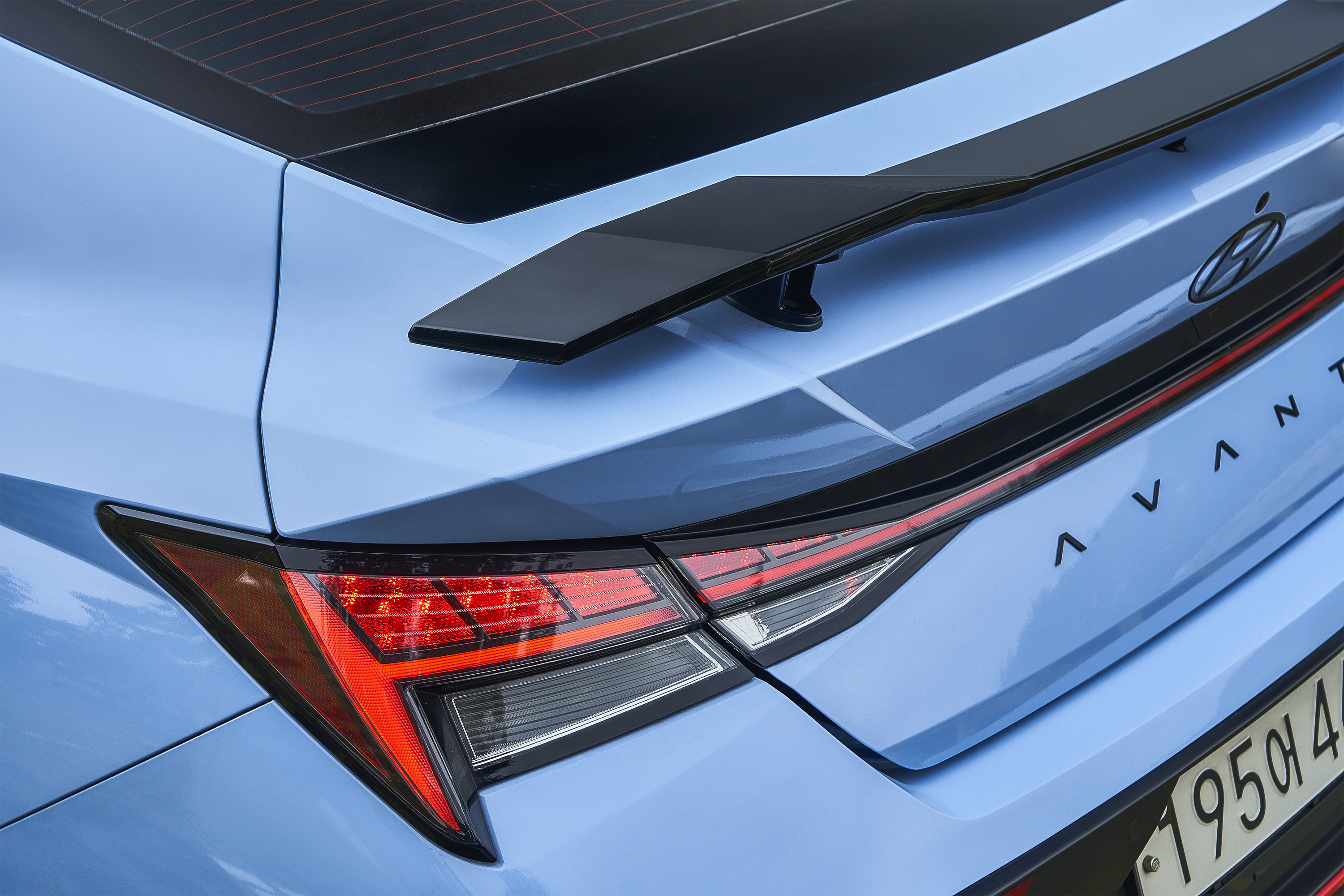 여기 더해 블랙 엠블럼, 리어 스포일러, 대형 배기 파이프, 사이드 실 몰딩, 19인치 광폭 타이어 등 고성능 퍼포먼스 세단이 마땅히 갖춰야 할 드레스업 패키지를 착실히 따르고 있습니다. 이런 패키지 덕분에 ‘이 차는 그냥 아반떼가 아니야’라고 말하는 듯 확실히 차별화를 꾀하죠.