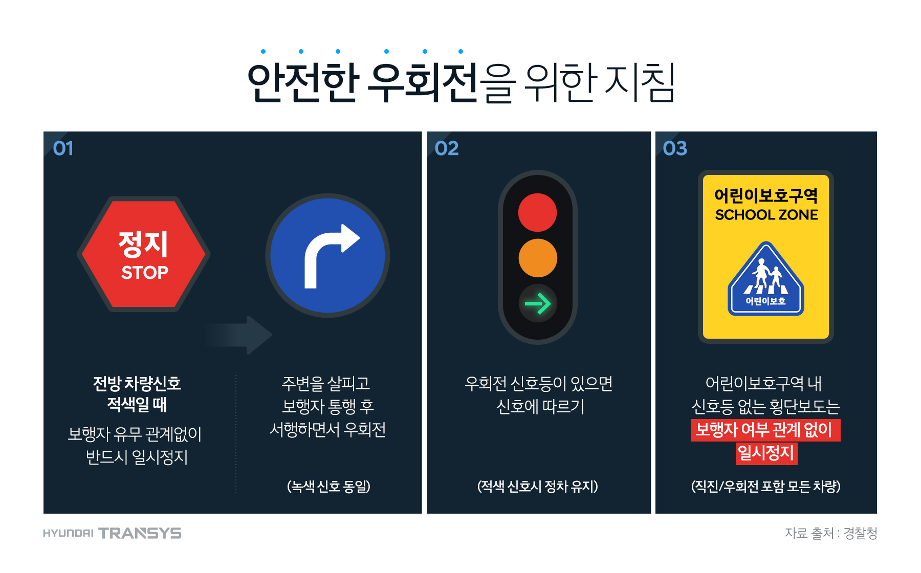 우회전, 헷갈릴 때는 일시정지 & 천천히
