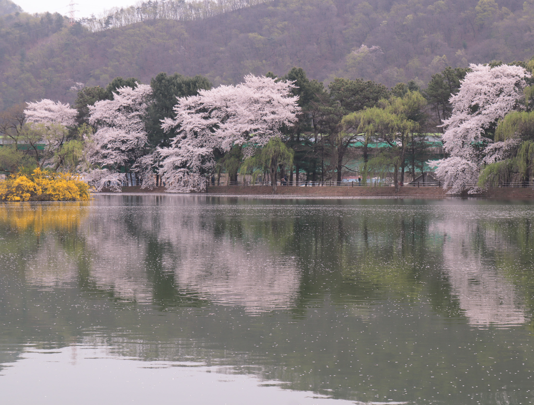 (구)청평중앙내수면연구소 트레킹ㅣ청평역 부근에는 숨은 듯 자리한 비밀의 정원이 있다. (구)청평중앙내수면연구소가 그곳. (구)가 붙은 건 연구소가 2021년 충남 금산으로 이전했기 때문인데, 부지 한가운데 저수지가 떡 하니 자리한 것도 놀랍지만 주변을 둘러싼 꽃과 나무의 아름다운 색의 조화는 비현실적으로 느껴질 만큼 아름답다. 원래는 연구소 이전 후 출입이 통제됐다가 시민들의 열렬한 청원으로 지난해부터 벚꽃 시즌에만 개방하고 있다. 그러니 모네의 정원 같은 저수지 주변을 천천히 걷는 건 봄 한 철에만 느낄 수 있는 행운. 잔잔한 물 위로 파란 하늘과 연둣빛 버드나무, 샛노란 개나리와 연분홍색 벚꽃 나무가 그대로 담겨 한 폭의 풍경화를 보는 듯하다.
