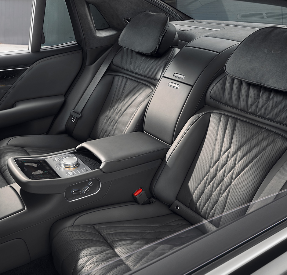 22방향 에르고 릴렉싱 시트가 운전자에게 편안한 운전 경험을 선사한다면, G90의 뒷좌석은 VIP 탑승자에게 편안한 휴식을 제공하는 데 초점을 맞추고 있습니다. 플래그십 럭셔리 세단이 갖춰야 할 덕목이죠. 앞좌석 시트와 달리 뒷좌석은 차체와 맞닿은 부분이 많기 때문에 시트 조절 기능을 구현하는 데 많은 제약이 따릅니다.