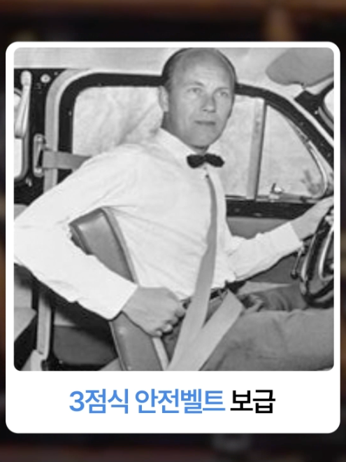 늘어난 교통사고로 안전 규제가 강화되면서 개선된 부분도 있습니다. 기존의 2점식 안전벨트(지지점이 2곳인 안전벨트)에서 어깨, 허리를 모두 감싸는 3점식 안전벨트가 도입되었고, 헤드레스트와 측면 에어백 등도 통합 의무화되었습니다.