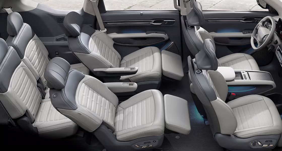 그 뿐만 아니라, 통풍 시트는 무게와 크기를 줄이는 것도 중요합니다. 전체적인 차의 성능이나 연비(전비), 실내 공간 활용에 부정적 영향을 주지 않아야 하기 때문입니다. 특히 시트의 조절 범위가 제한적인 1열 좌석과 달리, 다양한 조절과 변형이 필요한 SUV 2열 좌석은 설계가 더 까다로운 편입니다. 얼마 전까지만 해도 SUV의 2열은 쿠션과 등판에 별도로 통풍 팬을 설치하는 경우가 많았습니다. 폴딩 기능을 고려한 시트 구조가 1열보다 복잡하기 때문입니다. 하지만 별도의 통풍 팬을 설치하는 이 방법은 공간을 많이 차지하고 무게가 많이 나간다는 단점이 있었습니다. 이를 해결한 것이 현대트랜시스가 세계 최초로 개발한 통풍 도킹 시스템입니다. EV9에 적용된 이 기술은 통풍 구조에 도킹 방식을 적용해, 등판을 세웠을 때만 관로가 연결되어 통풍 기능이 작동하도록 만들었습니다.
