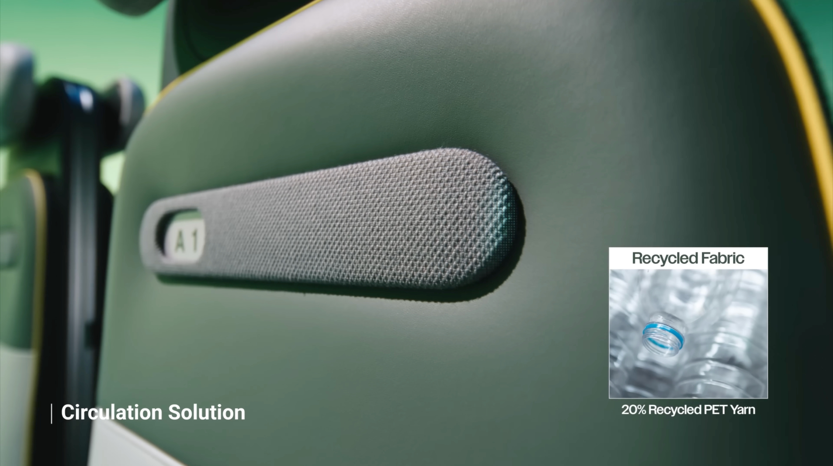 현대트랜시스의 PBV 시트는 자원 순환을 실현하기 위한 CMF(Color 색상, Material 소재, Finish 마감) 전략을 적용하고 있습니다. 헤드레스트와 암레스트에는 99.9% 재활용이 가능한 TPU SCF 폼을 적용하였고, 시트를 감싸는 커버링은 식물성 가소재 (사탕수수 10%) 기반의 바이오 PU와 리사이클 PET 원사(20% 함량)를 활용하여 만든 패브릭 원단으로 제작하였습니다. 현대트랜시스는 시트의 내구성과 기능성을 향상은 물론 자원순환을 고려한 신소재 적용을 확대하여 PBV만의 가치를 더욱 높여가고 있습니다.