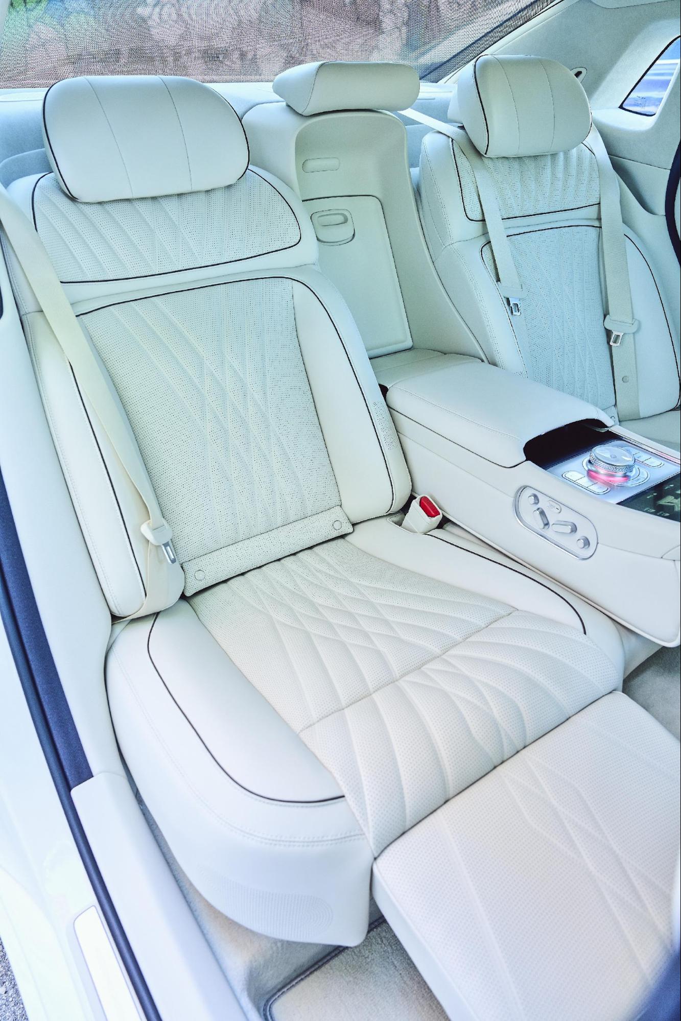 G90의 2열 시트는 차체 구조와 간섭이 많아 기능 구현에 제약이 많았지만, 현대트랜시스는 16방향 조절을 비롯해 레그레스트와 풋레스트를 더했습니다. 특히 풋레스트에도 열선과 통풍 기능을 추가했죠. 마사지(발 마사지 포함)를 비롯해, 리클라이닝(일반 42도, 롱휠베이스 45도) 기능도 함께 제공됩니다. 나아가 위험을 감지하면 안전 자세로 빠르게 되돌리는 PSS(Pre-Active Safety Seat)도 G90 시트의 특징입니다.