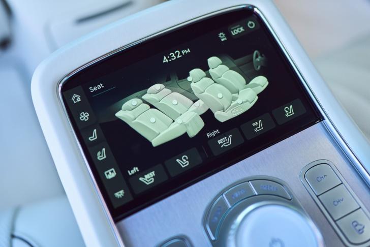 현대트랜시스는 G90 운전석에 22방향(22-way) 조절이 가능한 에르고 릴렉싱 시트를 적용했습니다. 전동 헤드레스트, 럼버 서포트, 쿠션 익스텐션, 시트백, 쿠션, 사이드 볼스터까지 세밀하게 조정해 체형과 목적에 맞는 최적의 포지션을 구현하려는 접근입니다. 물론 마사지 기능도 제공됐죠.