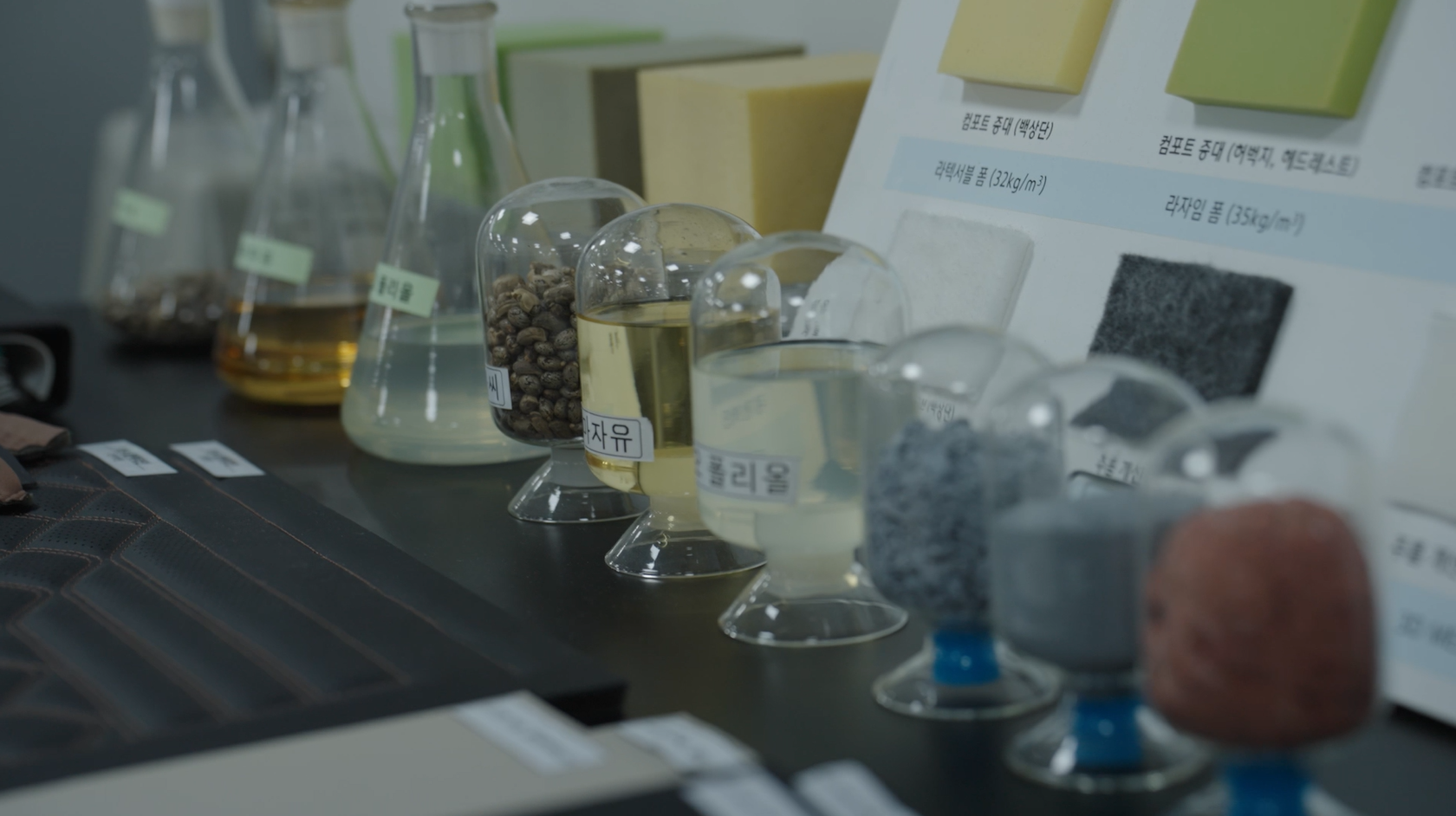 단순히 환경에 미치는 영향만을 고려한 것이 아니라, 실제 시트에 적용 가능한 수준까지 성능을 확보하고 검증하는 것을 목표로 진행되었는데요. 초기에는 재활용 소재의 특성상 내구성, 착좌감 측면에서 우려도 있었지만 다양한 물성 평가를 통해 문제점을 개선했고, 시트 부품단위 평가까지 문제 없이 스펙을 충족시킬 수 있었습니다.