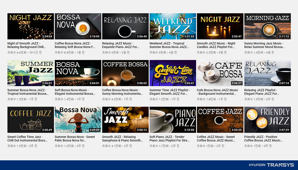 <Relax Music> 채널은 일상에서 배경음악으로 활용하기 좋습니다. 이 채널은 집에서 커피를 마실 때, 밤에 잠들기 전, 상쾌한 주말 아침을 시작할 때 등 다양한 상황별로 골라 듣는 재미가 있죠. 모든 일상을 재즈와 함께 하고 싶다면 <Relax Music>채널을 확인해보세요. 상황별로 듣는 재즈가 여러분의 일상을 더욱 풍요롭게 해줄 것입니다.